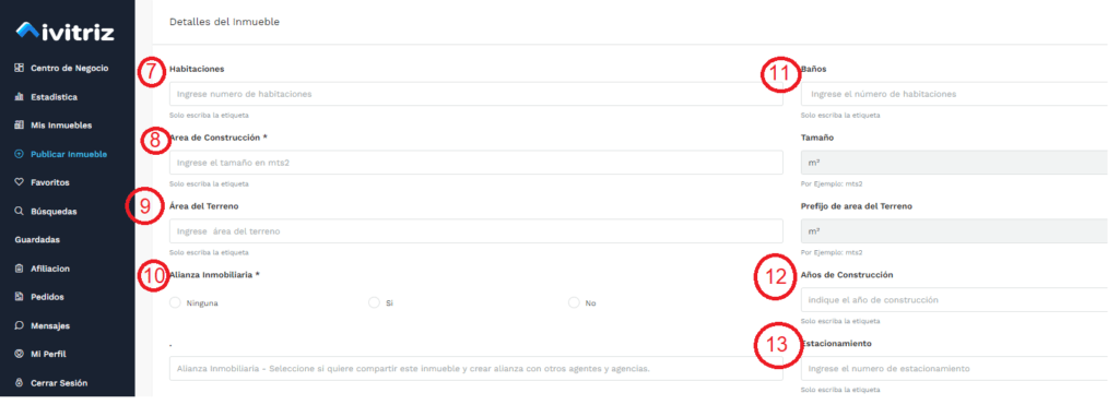 (10)  Alianza inmobiliaria: Use este recurso si quiere compartir tu inmueble con otros colegas agentes o agencias, al marcar (Si) es la forma de informar en tu pagina que si acepta tener alianzas de negocios. Ahora bien por defecto esta en NO.