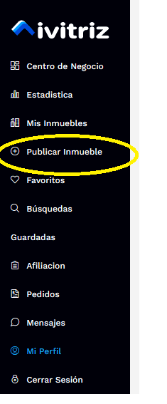 2) Entra al “Centro de negocios”  o panel administrativo y seleccione “Publicar Inmueble”