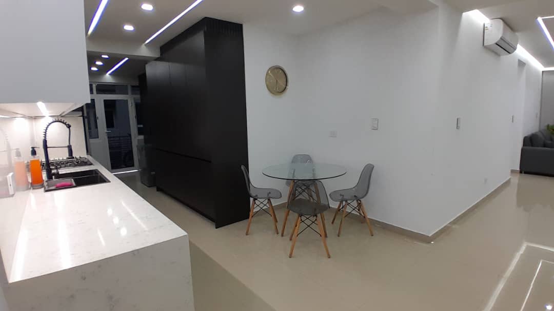 El apartamento queda equipado con unidades de aire acondicionado, calentador, closeths, armarios empotrados y moderna cocina equipada.