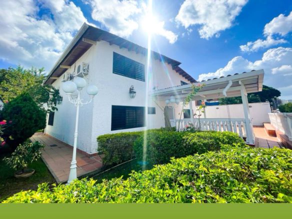 Hermosa casa de inspiración provenzal,excelentemente ubicada cerca de servicios y transporte . Amplias áreas sociales, terraza lounge con baño, gazebo, terraza, anexo con 1 habitación , 2 habitaciones de servicio, estudio, tv room, family room , cómoda habitación principal con terraza y walk in closet y baño, habitación auxiliar con baño, 2 habitaciones auxiliares que comparten 1 baño. Tanque de 35.000 lts En la zona hay Netuno Cerco eléctrico.