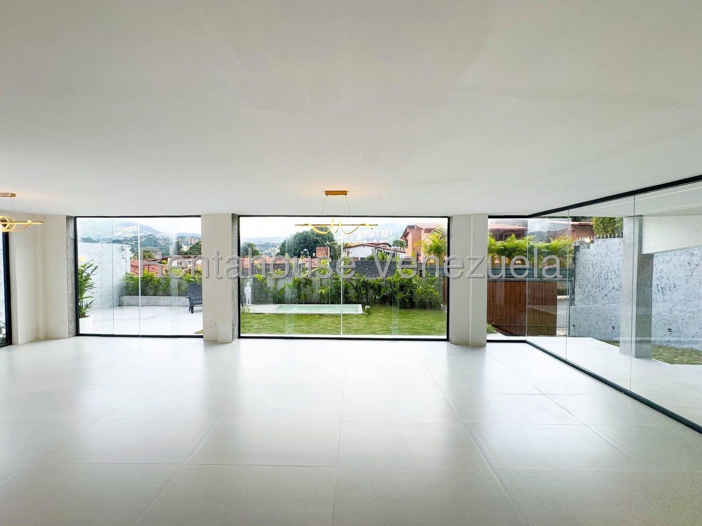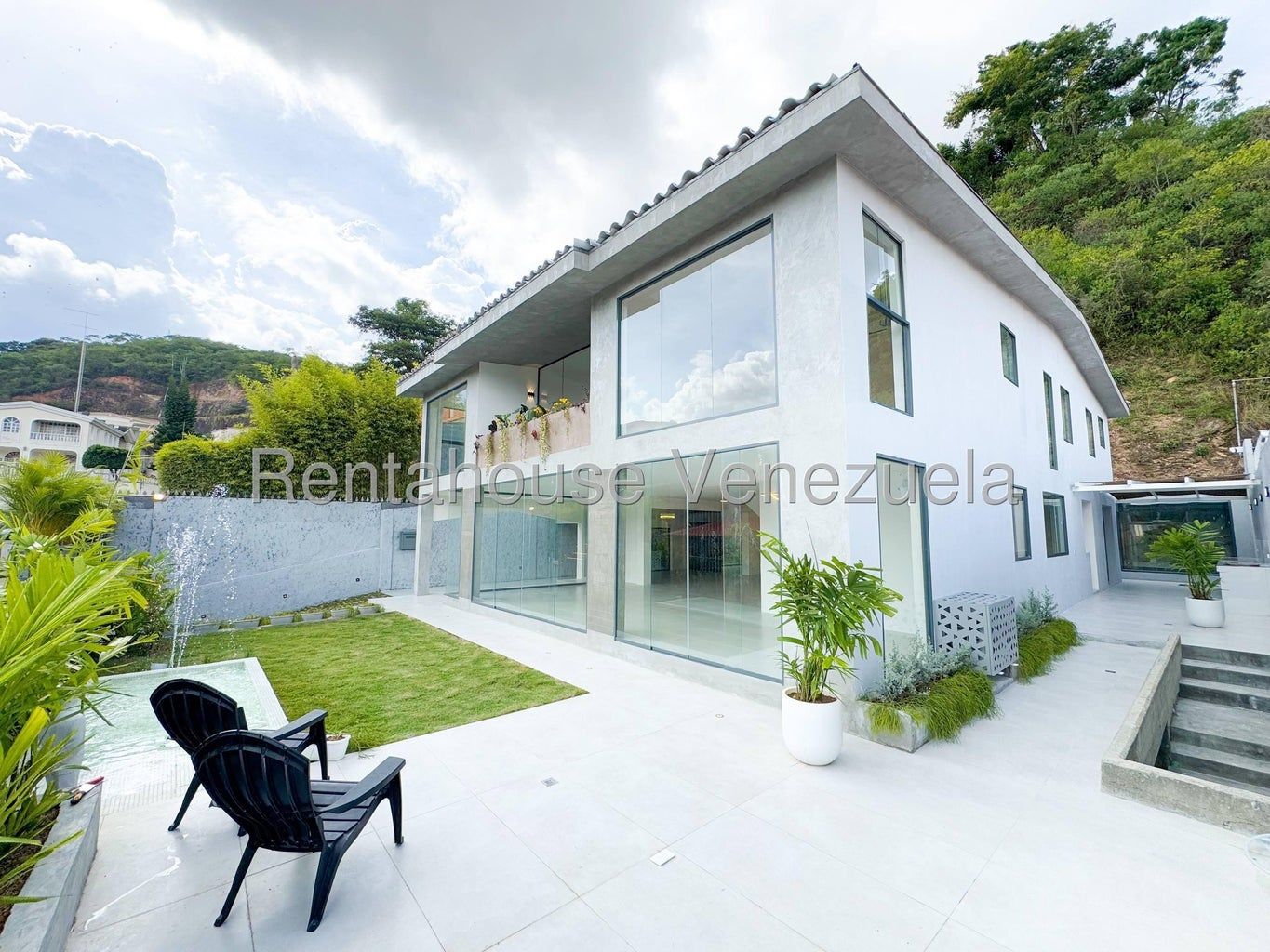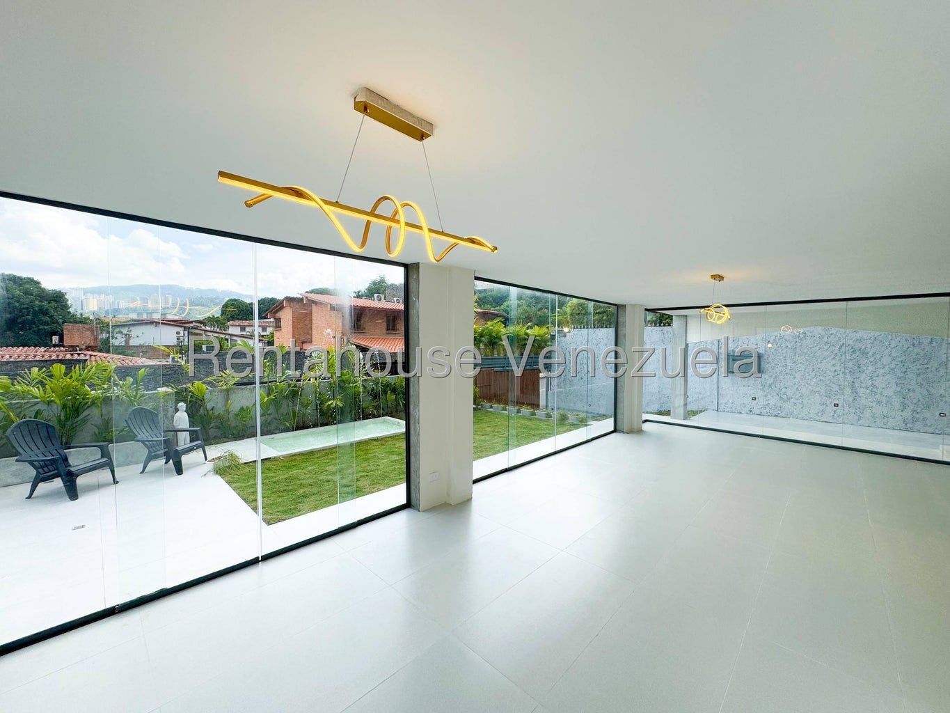 26-5545 Espectacular quinta a estrenar, remodelada con acabados de primera, fresca, luminosa y de sólida construcción, ubicada en una de las más exclusivas y seguras urbanizaciones de Caracas. Cuenta con una estupenda terraza con vista panorámica a la urbanización y espejo de agua, fuente, fire pit y parrillera; amén de una completa área de gimnasio, con tina al aire libre, ducha exterior y sala vapor.