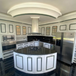 Mobiliario de cocina con tope de granito y gabinetes de romanilla de madera