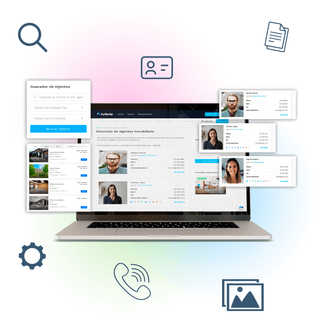 El sistema es ideal para el manejo de su organización. Al publicar como “Inmobiliaria” automáticamente se configura su espacio corporativo optimizado independiente, aquí podrás integrar o crear sus agentes, además podrás crear o asignar inmuebles para sus agentes y su organización, crearas alianzas, administrará sus inmuebles y sus agentes. En el Directorio aparecerá su agencia con todos sus inmuebles, contaras con tutoriales y asistencia y en todo sentido para que desarrolles tu empresa y entres al siguiente nivel.